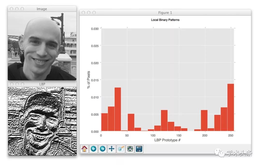 LBP是提取局部特征作为判别依据的。LBP方法显著的优点是对光照不敏感,但是依然没有解决姿态和表情的问题。不过相比于特征脸方法,LBP的识别率已经有了很大的提升。