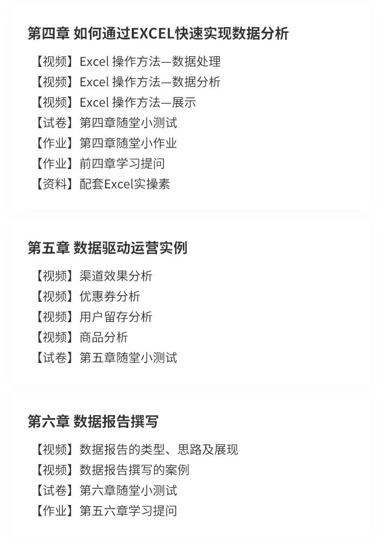 4. 学完可以掌握不同场景下优质数据报告的4大要点和写作方法——自从学会这招后,每次写数据分析报告时,老板和同事都在夸她。