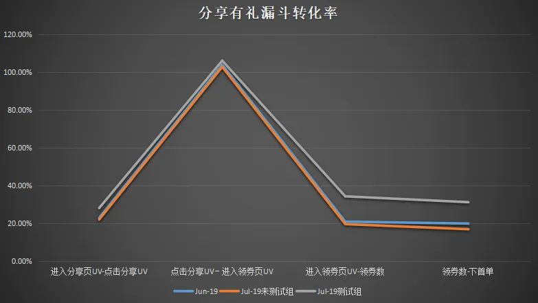 经过对分享有礼文案和设计的优化,初见成效,各个环节的转化率均有所提升。