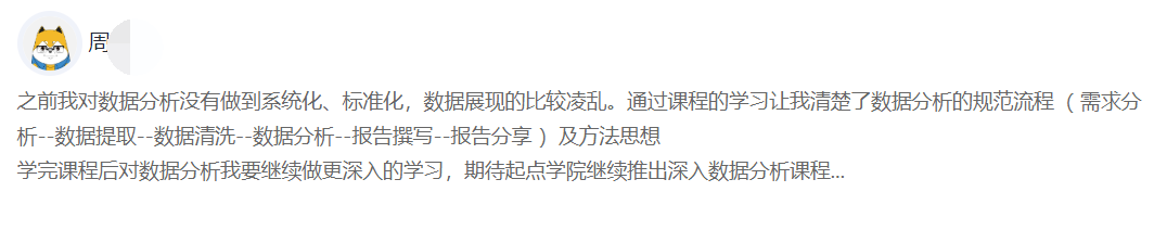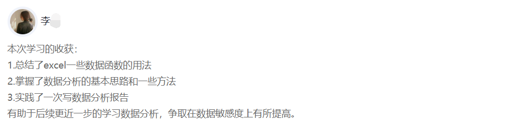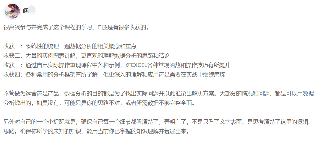 1. 学到一套完整的数据分析工作流程——解决了工作中数据量多且杂,零散抠数据、拼凑数据的问题,学会定位问题,找到数据异常的核心原因。