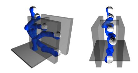 第二篇文章提出了一种桌面式的场景,其中七个自由度的KUKA LWR机器人手臂必须在环境中存在多个物体的情况下从初始姿势移动到目标姿势。我们表明,BKPIECE(AUC-Bandit)和RRT-Connect(随机森林)的最佳方法分别平均提高了4.5x和1.26x的性能。