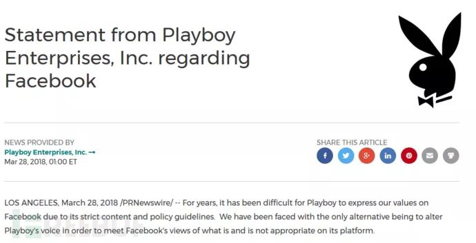 花花公子宣布删除Facebook官方主页,称价值观不同