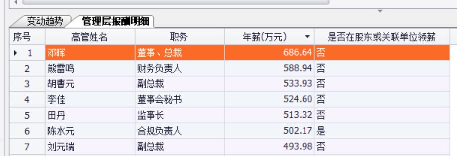 东方财富Choice金融终端数据显示,2016年,邓晖先生的年薪为686.64万元,很幸运由于刘元瑞先生已经当上了副总裁,所以年报中披露了他的年薪——493.98万元。邓先生税前一年比他多了192.66万元。