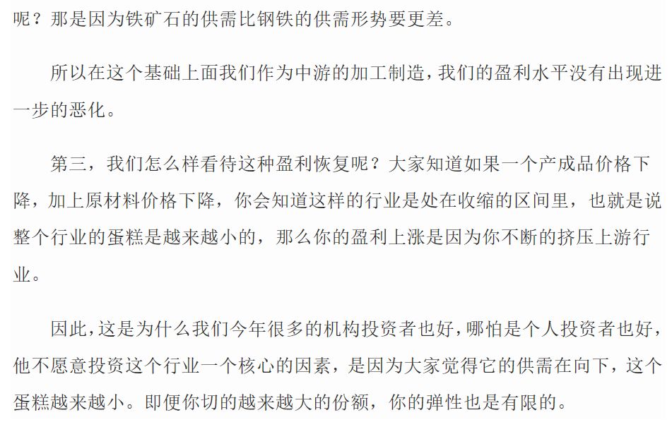 上面可以看出,刘先生在讲自己所研究的行业时,逻辑严密,论点清楚。而说到“从来没有很多人听我们仔细讲过这个行业”,多少是道出了研究一个大家都不看好行业的分析师心中的寂寞。