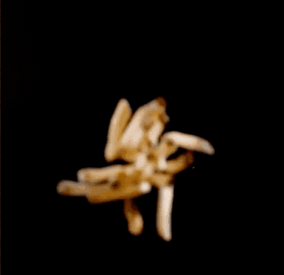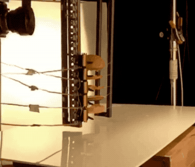 Budin 采用了用来拍摄火箭测试的军用高速摄像机拍摄跳舞的食物,创造出了以往静态图片无法达到的效果。而为了捕捉食物掉落时转瞬即逝的镜头,Budin 也和 Giralt 一样自制了许多机器。