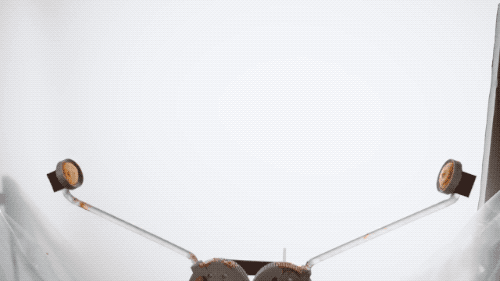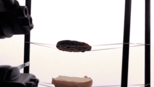 Giralt 用3D打印的方法制作了2个弹射器,这样2种酱料就可以在摄像机镜头前表演空中相撞。