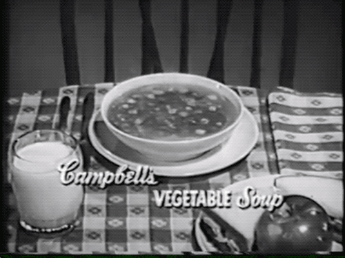 这就牵涉到1968年的一个丑闻了。来看看这个1968年的 Campbell 蔬菜汤的广告。
