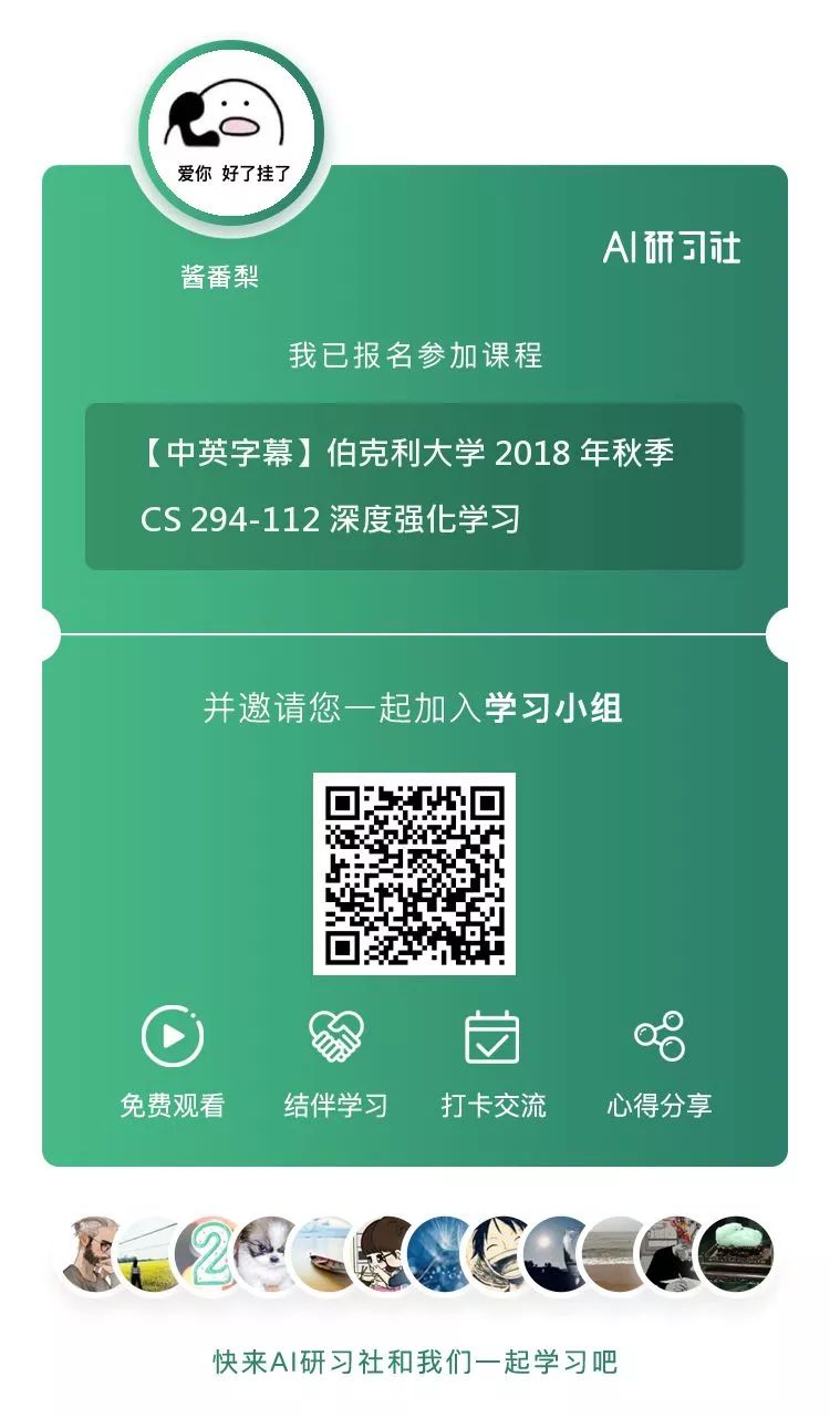 AI 研习社获得官方授权,汉化翻译伯克利大学 CS 294-112 《深度强化学习》,今天更新至第二讲~