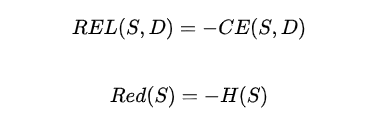 论文中,对冗余度的建模方法简单到不可思议。它认为,摘要包含的信息量表明了其本身的多样性程度。因此直接使用信息论中的熵来度量其信息量,即冗余程度。简化后的公式如下:
