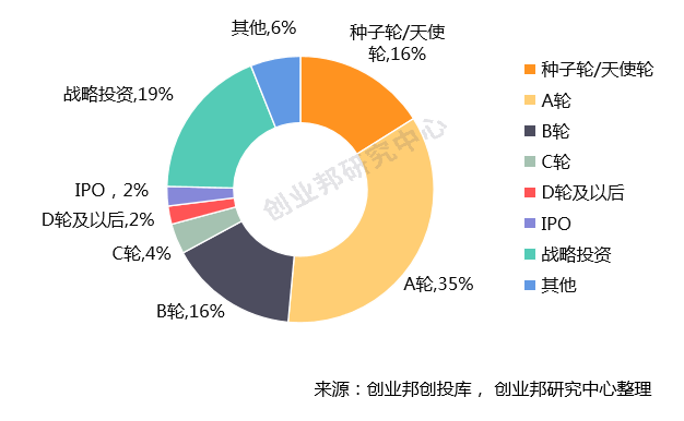 2019年前三季度,中国数字化/智能化领域有678家企业发起融资,包括数字化/智能化技术类企业及赋能垂直行业应用类企业。北京以235家,占比34.7%位居第一,并大幅领先第二名的广东,这与北京的全国科技创新中心地位相符。融资事件超过半数分布在早期阶段,种子轮到A轮合计占比为51%,其次是战略投资,占比为19%。