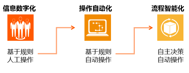 作为技术创新的产物,人工智能深入应用到各领域,在流程端、决策端赋能企业数字化/智能化转型。从基于规则的人工操作到自动操作再到自主决策,进阶采用数字化的方式来解决企业实际运营中产生的问题。