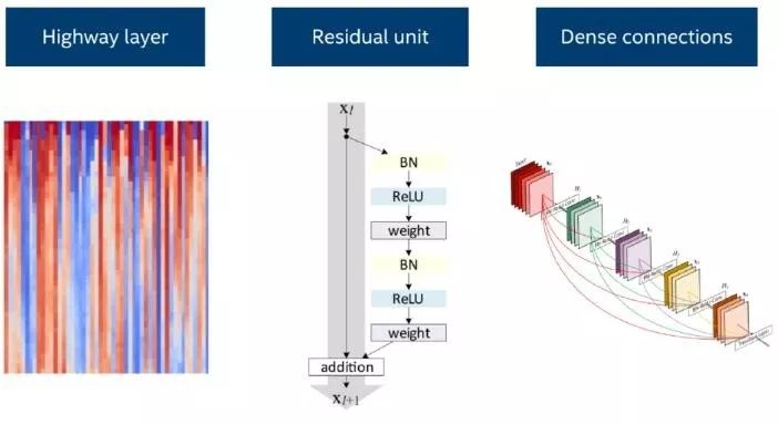 在深度学习的网络层方面,为了使得信号和梯度能够更容易地传递到深度神经网络的每一层,残差结构单元(residual layer)、highway 层(全连接的 highway 网络)以及稠密连接(dense connections)结构应运而生。有了这些网络层,目前最先进的计算机视觉技术通过利用深度学习网络的表示能力得以实现。同时,他们也在许多自然语言处理任务上提高了模型的性能。例如,将稠密连接的循环层用于语言模型(Improving Language Modeling using Densely Connected Recurrent Neural Networks,https://arxiv.org/abs/1707.06130 )。