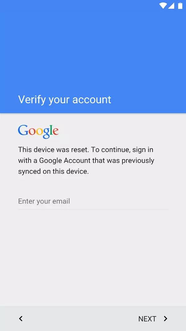 设备保护是唯一的新增界面,采用的是在开机设置显示新警告的形式。这个特性在设备被偷了之后“保护你的设备不被再次利用”。一旦设置了锁屏,设备保护就开始介入,并且会在擦除设备的时候被触发。如果你以机主正常的方式擦除设备——解锁手机并从设置选择“重置”——什么都不会发生。但如果你通过开发者工具擦除,设备会在下次开机设置的时候要求你“验证之前同步的谷歌账户”。