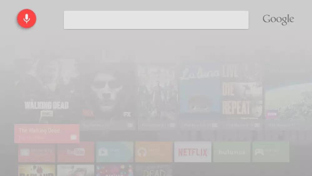 安卓 TV 的界面很简单。大幅的媒体略缩图占据了屏幕,可以横向滚动,这些媒体中有 Youtube、Google Play、Netflix、Hulu 以及其它来源。这些略缩图实际上是来自不同媒体源的“推荐”项目,它不是简单地将一个应用的内容填满屏幕。在那下面你可以直接访问应用和设置。