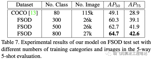 提供了一个1000类的少样本训练集FSOD,论文提出的模型的性能提升有一定程度得益于此训练集,是一个前所未有的训练集