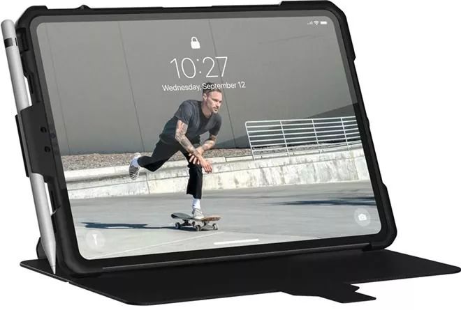 这张图片的出处应该是某家配件制造商,因为这款 iPad Pro 已经套上了保护壳。如果这款设备就是苹果即将发布的 iPad Pro 的真实再现,那将意味着新一代 iPad Pro 所使用的 TrueDepth 系统将隐藏在边框内,并且上下、左右边框的厚度都一样。