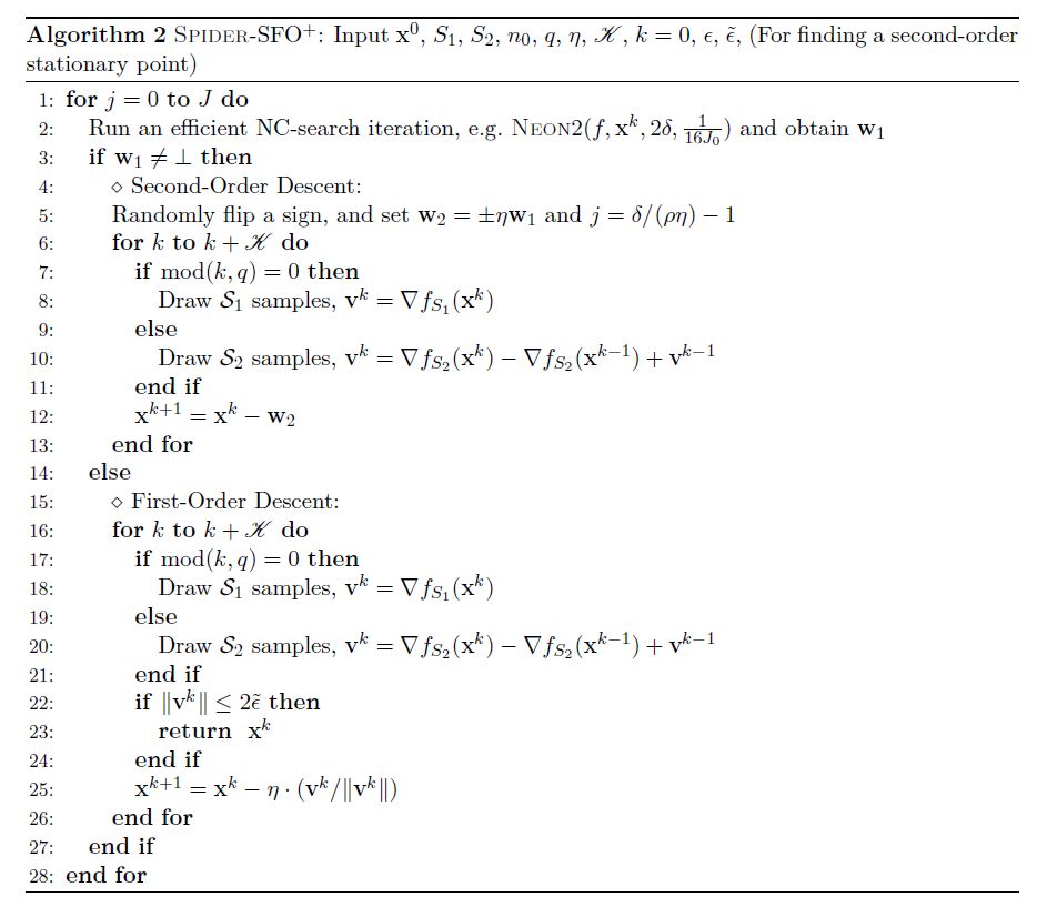 误差的二阶稳定点。除此之外,对于有限和并满足梯度利普希茨连续的函数族,SPIDER-SFO 在获取一阶稳定点时几乎达到了算法下界。