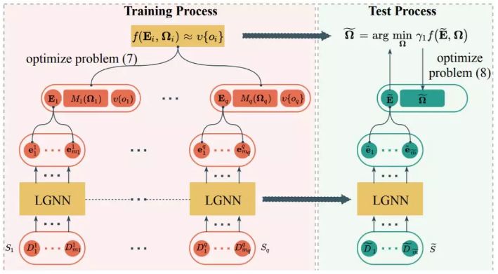 上图展示了 L2MT 的框架,该框架包含 2 个阶段。训练阶段是学习一个估计函数 f(·,·) ,以基于训练数据集和特定的多任务模型来近似相对测试误差;测试阶段则是通过最小化该相对测试误差(接近随 Ω 变化的 γ1f(E˜ , Ω))来学习任务协方差矩阵。