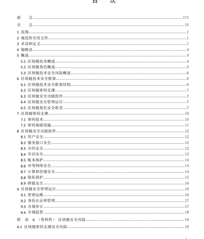 本标准针对区块链的安全架构,从密码技术、基础设施、应用层、合约层、共识层、网络层、数据层、隐私保护、跨链操作和管理运维对区块链系统或网络规定了应满足的安全要求,适用于政府部门、企事业单位使用区块链服务时参考,也适用于区块链服务供应商按照合适的安全要求开发区块链系统,进行系统部署和维护。本标准主要技术内容:从区块链面临的安全风险入手,设计以密码安全保障技术为支撑的区块链安全架构,将区块链系统划分为不同的层级,针对各个层级设计区块链安全体系,从技术和管理的角度提出安全规范,包括基本要求和增强要求。本项目适应于政府部门、企事业单位使用区块链服务时参考,也适应于区块链服务供应商按照合适的安全要求开发区块链系统,进行系统部署和维护。