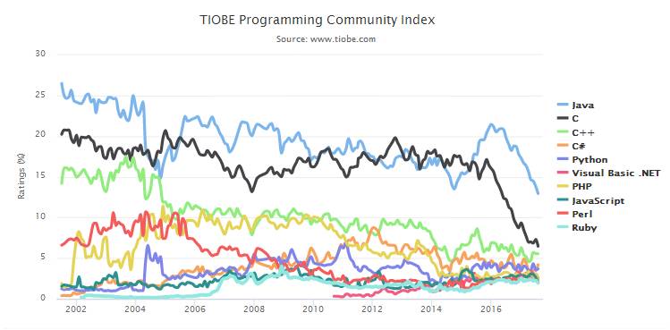 这个排行榜可以用来考查你的编程技能是否与时俱进,也可以在开发新系统时作为一个语言选择依据。
