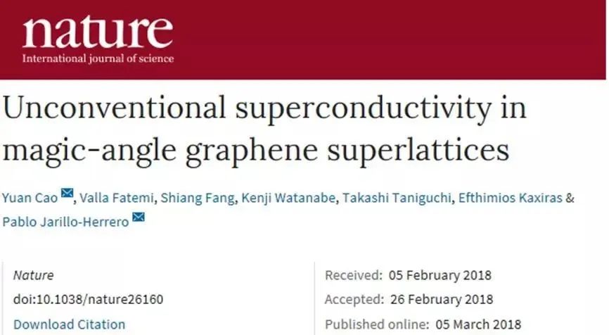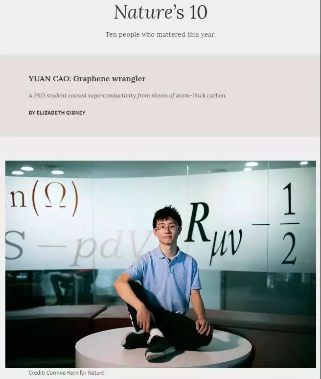 两年前,2018 年 3 月 6 日,国际顶尖学术期刊 Nature 连刊两文报道石墨烯超导重大发现,第一作者也是曹原。因为这两篇论文巨大的影响力,Nature 杂志发布的 2018 年度影响世界的十大科学人物,时年仅 22 岁的中国学者曹原位居榜首,