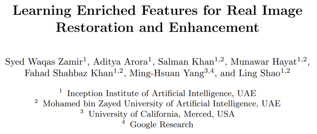 学习丰富的特征,用于真实图像的恢复和增强(MIRNet),MIRNet针对低级图像任务,主要任务是图像去噪,超分辨,图像增强。本文与之前读过的CycleISP同属于阿联酋人工智能研究院的一个团队,两篇文章分别中了2020 CVPR oral和2020 ECCV,个人认为该团队在模块的选择,网络结构的构建上还是理解很深刻的,CycleISP的论文笔记我会在文章结尾处附上链接。