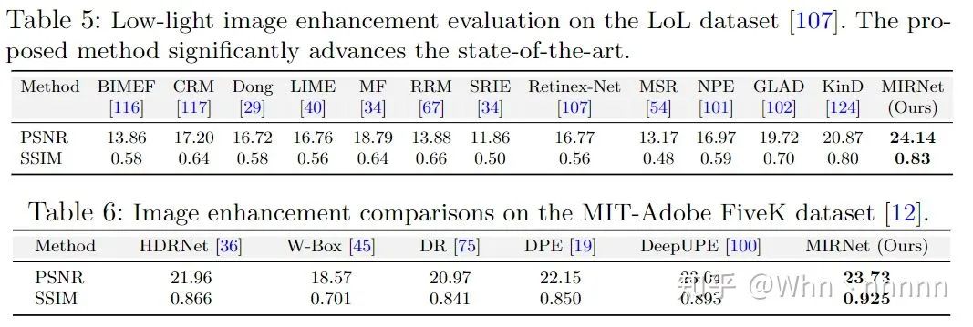 对于图像增强,我了解的就要更少一点了,所以还是仅就文中的实验数据和视觉效果来看,MIRNet的效果不弱于其他SOTA算法。