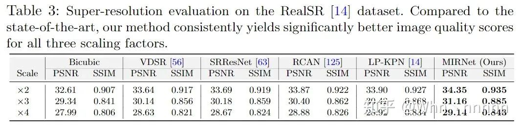 对于SR部分,我了解的方法并不太多,不过从文中的实验对比数据来看,MIRNet的表现还是十分优秀的,因为了解不多,这里就不做过多的评价了。