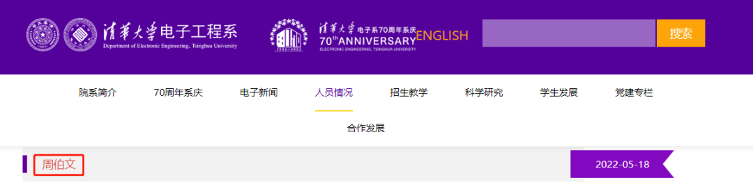 目前,清华大学电子工程系官网上已经可以搜到周伯文的相关信息。