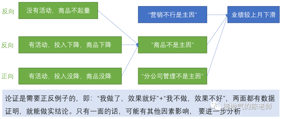 类似地,每一条假设都有证据,则可以汇总一个结论:营销力度不足,导致了业绩下滑问题。