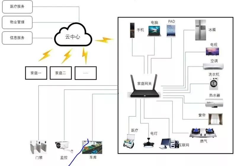 在智能家庭场景中,边缘计算节点(家庭网关、智能终端)具备各种异构接口,包括网线、电力线、同轴电缆、无线等等,同时还可以对大量异构数据进行处理,再将处理后的数据统一上传到云平台。用户不仅仅可以通过网络连接边缘计算节点,对家庭终端进行控制,还可以通过访问云端,对长时间的数据进行访问。