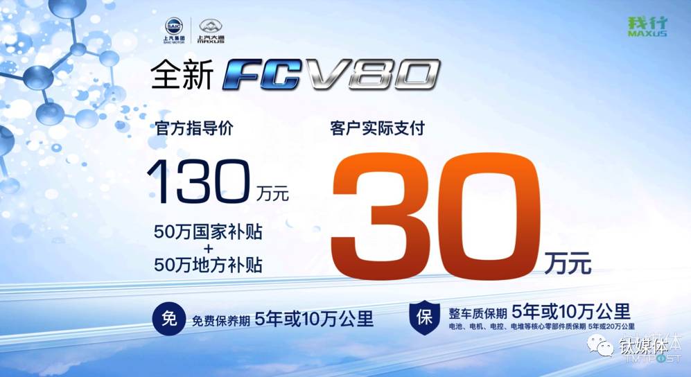 “这辆FCV80的厂商指导价是130万元,补贴后只用30万元。”刚刚过去的广州车展上,上汽大通旗下宽体轻客车型FCV80的售价引发现场热议。