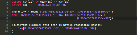 它还证明了一个问题:浮点数运算非常困难,这使得它不太适合用Hypothesis库进行验证。