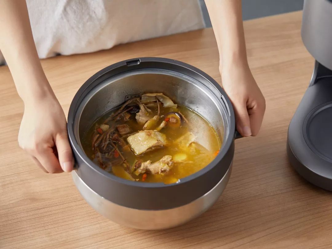 在密闭的锅中,食物可以实现6~8小时的物理保温,这是以往电饭煲所做不到的地方。