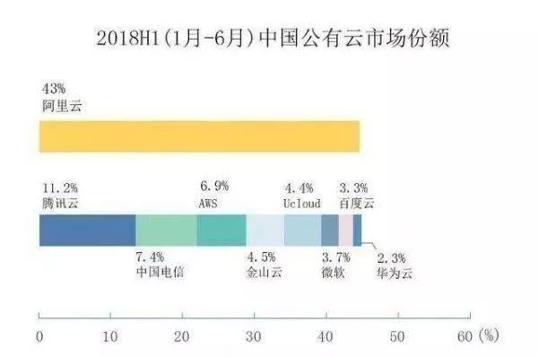 据市场研究公司IDC早前给出的数据,2018年国内公有云市场中,阿里云占有43%市场份额。不仅如此,阿里云已是亚太地区最大的云计算服务提供商。具体来讲,阿里云在亚太区的市场份额为19.6%,与2017年相比上升4.7%,首次超过亚马逊(11%)和微软Azure(8%)的总和。