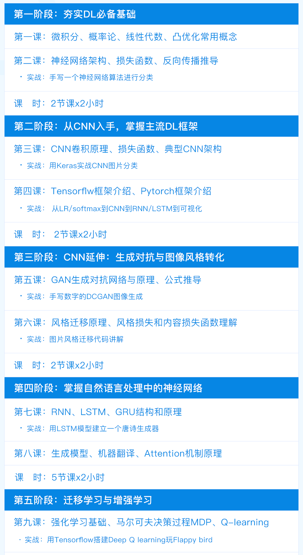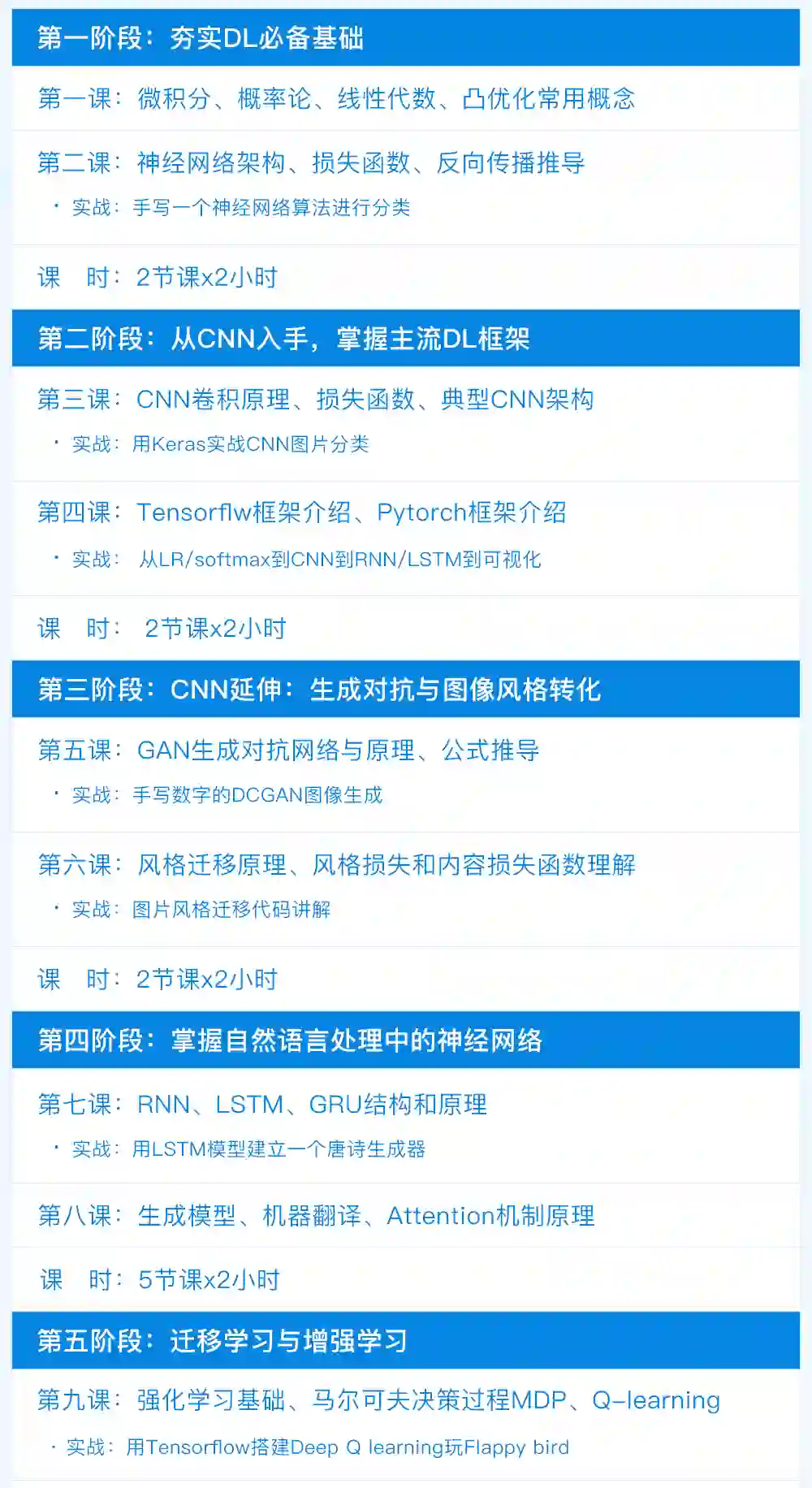 大家先看一下【深度学习特训营】的课程大纲,满满的干货,课程安排的也很合理,非常适合新手用来入门深度学习。