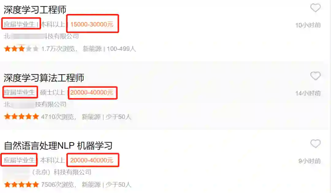 就应届生深度学习岗的薪资,都已经达到了很多其他互联网职业3年工作经验都难以企及的水平。