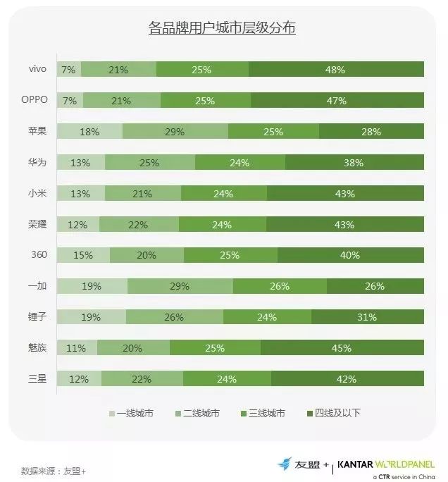 6、苹果用户更多的分布在一二线城市,OV和魅族渠道最为下沉