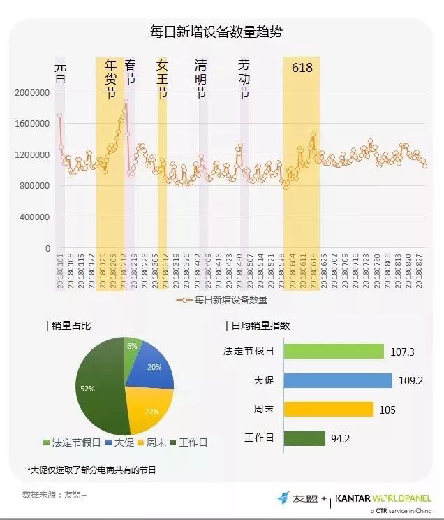 6、大促拉动了20%的手机销售增长且日均销售贡献最为显著