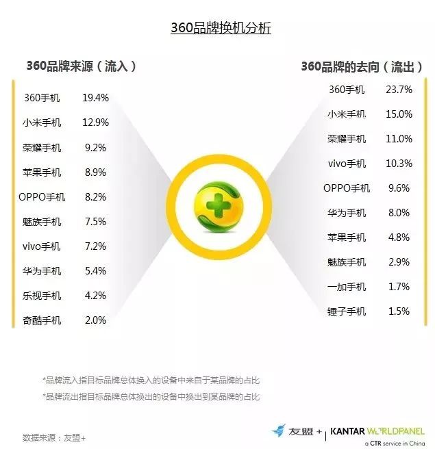 15、换机流向分析:和荣耀类似,从360品牌自身流入流出的比例约20%;与小米和荣耀的留转关系较为紧密
