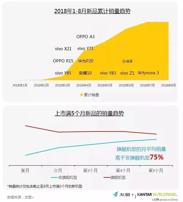 2、针对今年上市满5个月的新品发现,旗舰机型的月平均销量高于非旗舰机型75%