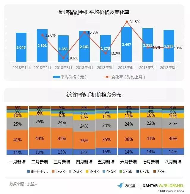 4、1-8月新增智能手机价格:3千元价格段占比超7成
