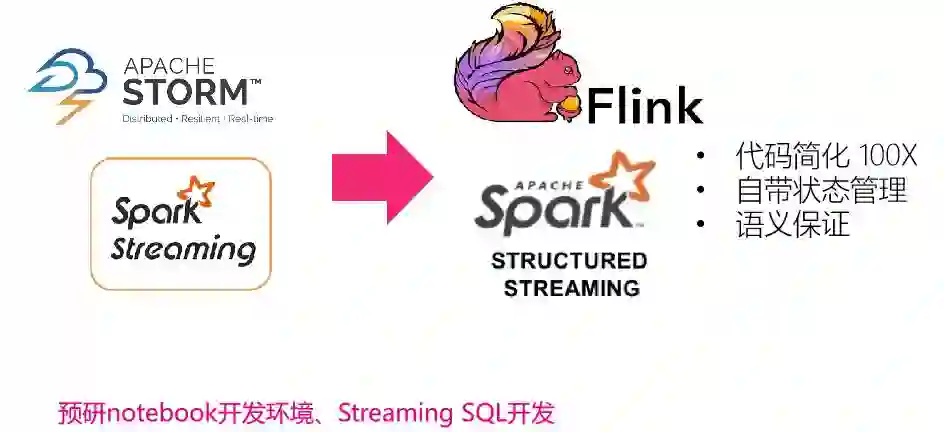 整个来说,开发平台也在预研实时的notebook开发环境,你可以完成相应的实时应用的开发,整个模式都是在替换Storm的节奏。