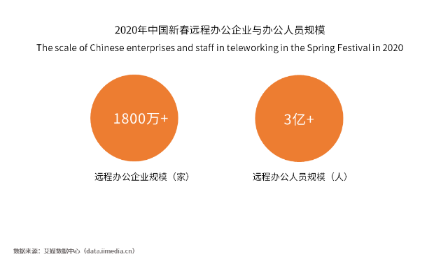 为了加强对人员密集场所的疫情防控,国家及各地政府已经陆续下发通知,要求各地企业、学校延期复工、开学。在延迟复工期间,大部分企业都选择了让员工以远程办公的形式恢复工作。在这样的一个特殊时期,在线办公软件无疑是当下最热门的增长领域之一,不少办公软件都在不断地经历着服务器崩盘、扩容恢复的考验。根据艾媒咨询数据显示,2020年疫情期间中国远程办公企业规模超过1800万家,远程办公人员超过3亿人。