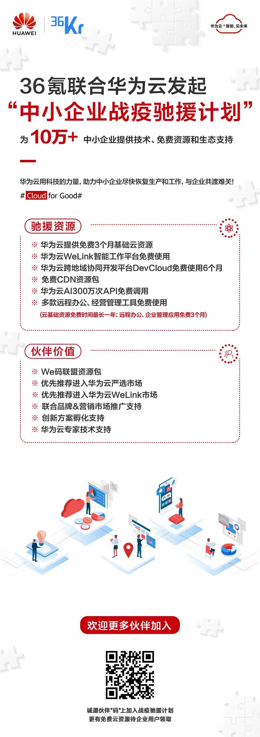 为了帮助众多的中小微企业顺利抗疫、安全复工,华为云联合36氪共同发起“中小企业战疫驰援计划”,推出免费战疫云资源包,免费开放给中小微企业,帮助中小微企业尽快顺利恢复工作,以及安全生产。希望通过科技的力量,为全行业的安全复工复产提供强有力的支撑,为生态伙伴提供全方位的驰援。