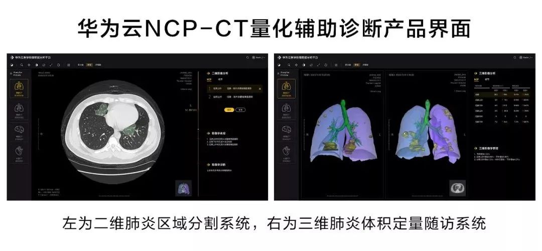 以本次疫情影响最大的医疗行业为例,在医疗行业深耕多年的华为云,之前通过与金域医学合作,通过对超过4350万例宫颈癌样本的深度学习,训练出了一套效率与精准度极高的AI辅助宫颈癌筛查模型,AI识别的效率是人工判读的10倍,极大地提高了宫颈癌的筛查效率。而在本次疫情中,华为云与华中科技大学、蓝网科技等通力协作,研发并推出新型冠状病毒肺炎AI辅助医学影像量化分析服务。该服务基于华为云领先的计算机视觉、医学影像分析等AI技术,以及华为Ascend(昇腾)系列AI芯片强大算力,可实现单病例量化结果秒级输出,AI+医生复核的总体效率是纯人工量化评估速度的数十倍,大大地提升诊断效率。