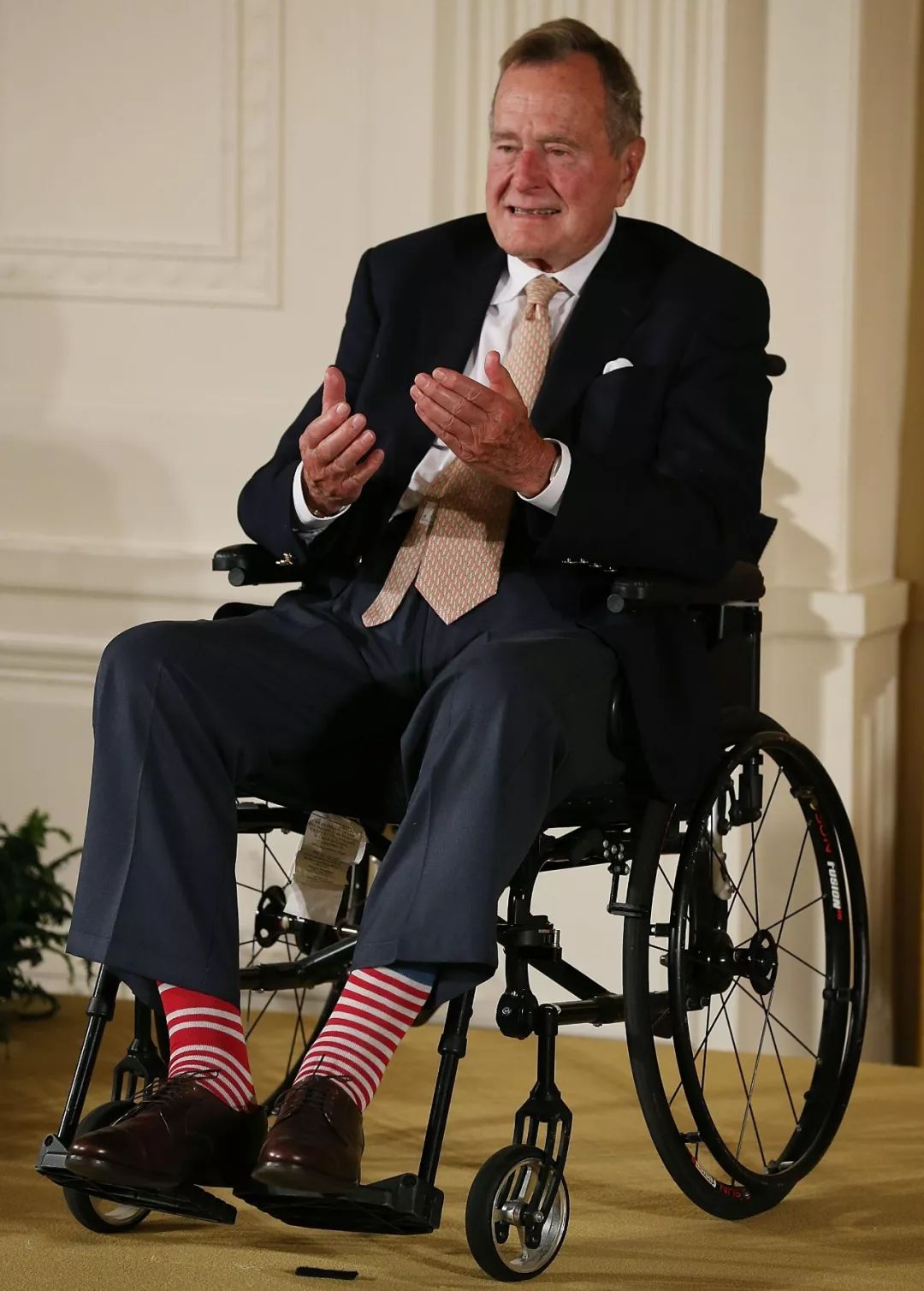 2013年7月15日,奥巴马在白宫颁发第五千座「每日一点星光奖」,美国前总统老布什穿着一双红白条纹的袜子,坐轮椅出席了此次颁奖礼