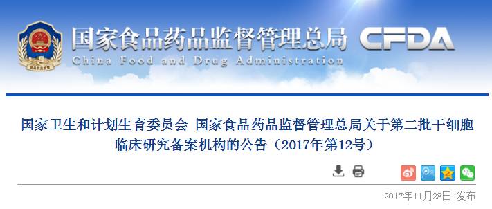为规范和促进干细胞临床研究,根据《干细胞临床研究管理办法(试行)》(国卫科教发〔2015〕48号),国家卫生计生委和食品药品监管总局组织对申报干细胞临床研究机构备案材料进行复核。11月28日,第二批干细胞临床研究备案机构揭晓,共72家机构入选!