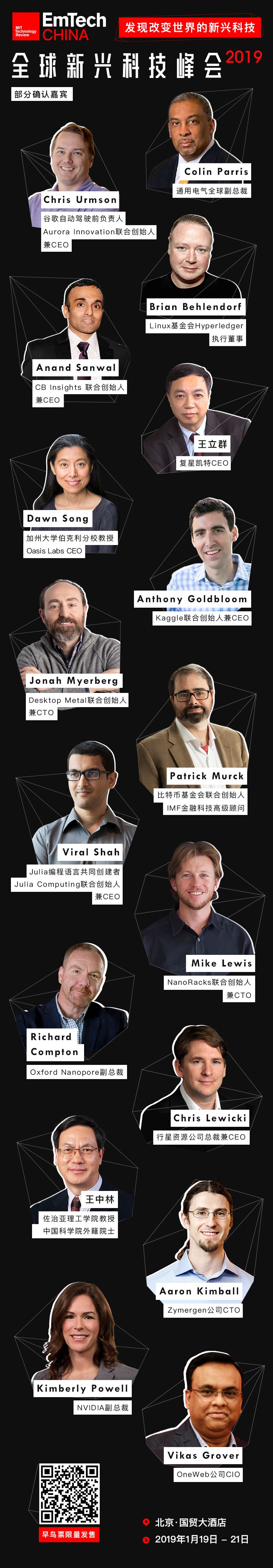 从筹备进度来看,EmTech China 2019 不论从嘉宾量级、会议规模、内容丰富程度上看,都将大幅提升!目前已确认出席的 17 位科技领袖包括: