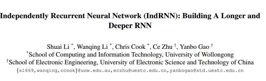 论文:Independently Recurrent Neural Network (IndRNN): Building A Longer and Deeper RNN